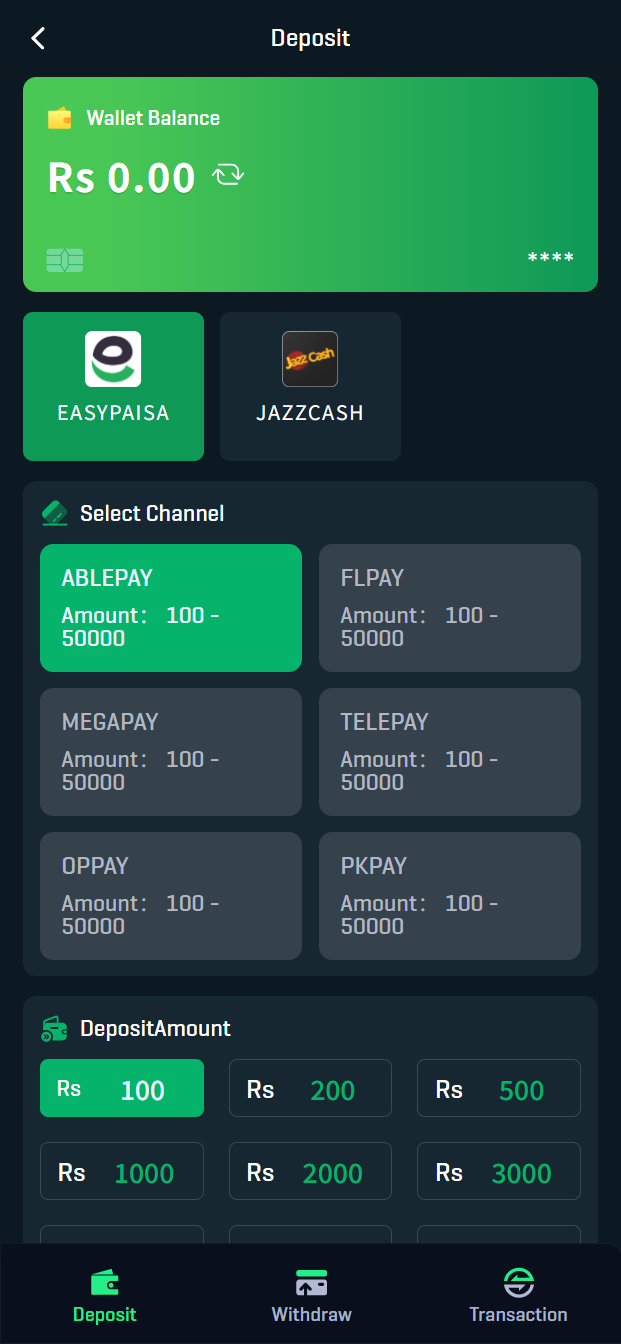 Withdraw Earnings: Transfer your winnings to your Easypaisa or JazzCash account.